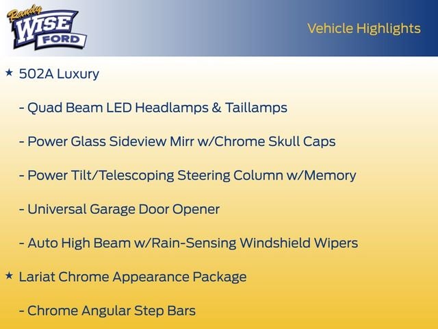 Premium Style: Features the Lariat Chrome Appearance Package with 20-inch Chrome-Like PVD Wheels and Power-Deployable Running Boards.