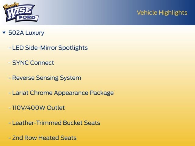 Lariat Luxury (502A Package): Indulge in a Black Leather-Trimmed interior with Heated and Ventilated Front Seats, Heated Rear Seats, and a Heated Steering Wheel.