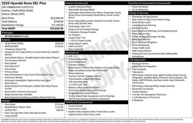 Model: 2020 Hyundai Kona SEL Plus